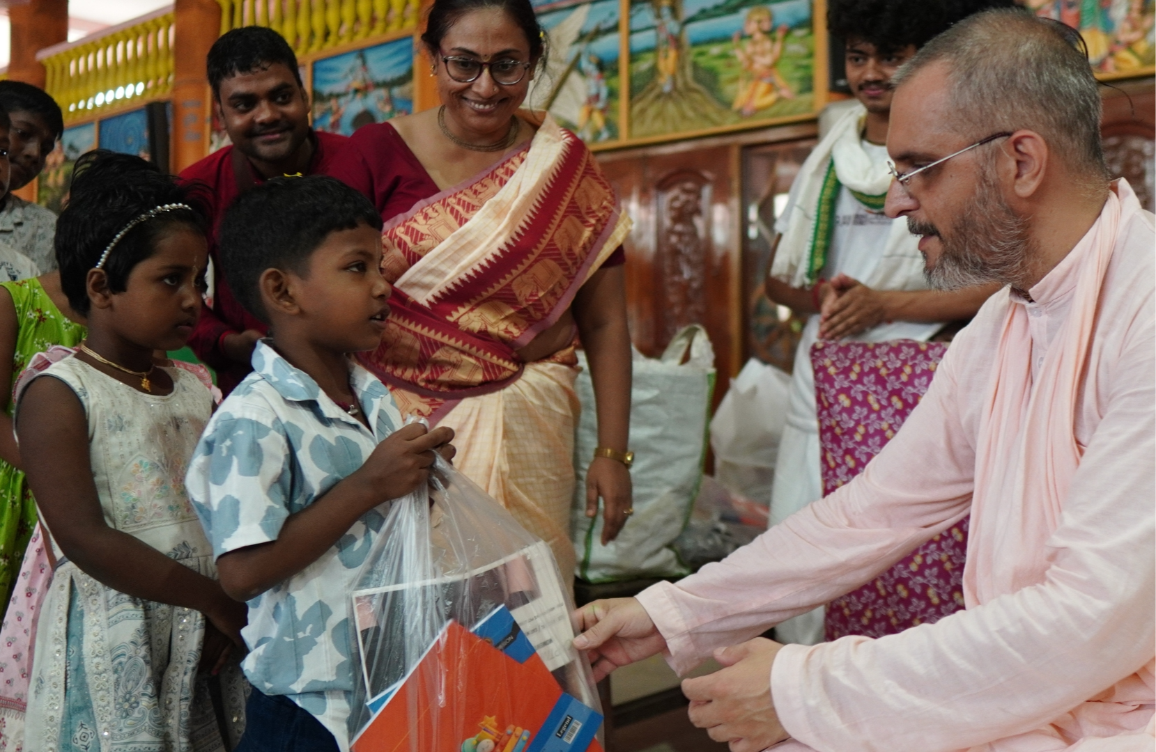 Родился в Рио-де-Жанейро в 1981 году, получил харинаму и дикшу в 2007 году (год, когда он также начал жизнь монаха в Индии) и получил санньясу от Шрилы Бхакти Вигьяны Бхарати Госвами Махараджа в 2017 году.